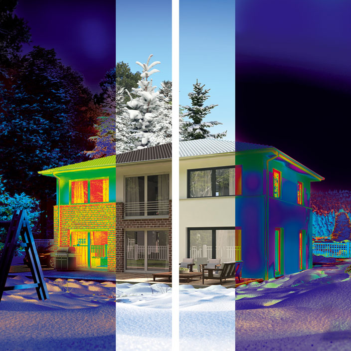 Le premier phénomène concerne les propriétés des cloisons de construction qui, ayant une résistance thermique déterminée, permettent la pénétration dans leur structure de l’énergie des ondes thermiques, sa traversée et son échappement vers l’extérieur (la chaleur traverse toujours des endroits à température plus élevée vers les endroits à température plus basse). Ainsi se créent des pertes d’énergie mesurables que l’on peut voir sur les photos de caméra thermique.